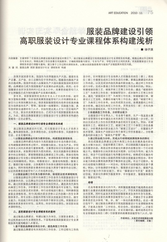 服装品牌建设引领高职服装设计专业课程体系构建浅析