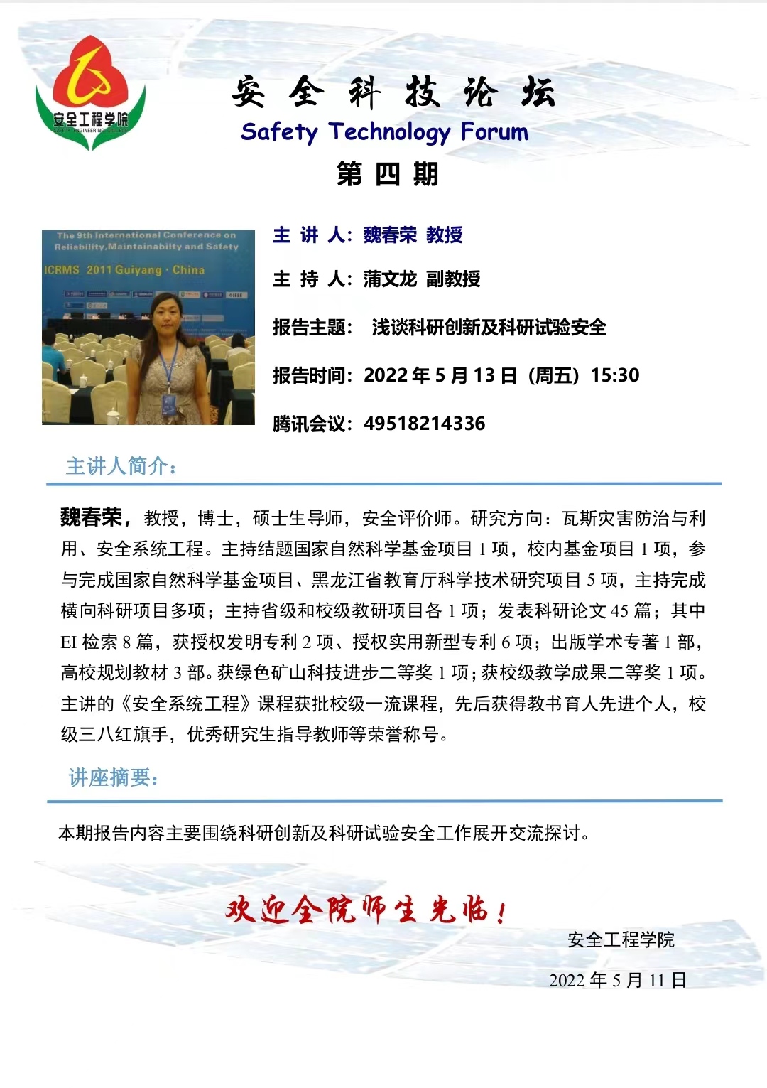 安全科技论坛第四期 主讲人 魏春荣教授