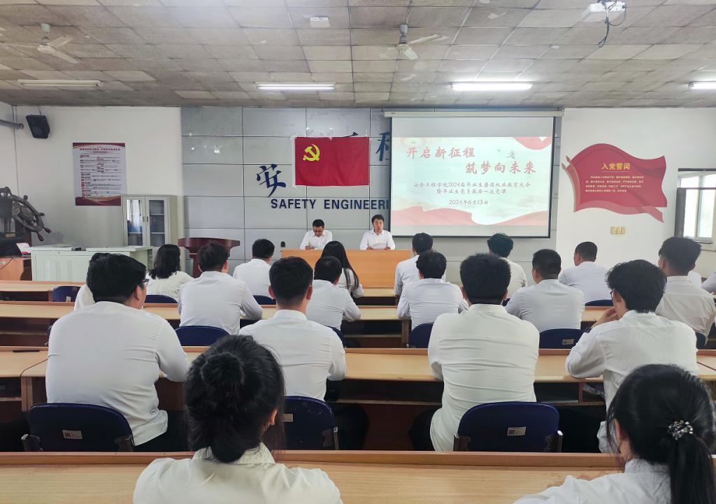 一堂专题党课,坚定理想信念。为认真贯彻落实党纪教育相关要求,进一步引导毕业生党员学纪、知纪、明纪、守纪,发挥党员的先锋模范作用,走向社会后保持共产党员先进性,强化毕业生党员的身份意识。安全工程学院党委书记王娟以“明纪自律守初心,砥砺前行启新程”为题,围绕坚定理想信念、始终忠诚于党,争做新时代的奋斗者;坚持自强不息、担当时代重任,争做奋进新征程的青年先锋;发扬艰苦奋斗、永葆共产党人的政治本色,争当新时代中国好青年等三个方面,为2024届毕业生党员上了一堂生动精彩的党课。让毕业生党员更加牢记党员身份,增强了社会责任感,坚定了安全学子要传承好陈郁、袁溥之等老一辈无产阶级革命家的红色基因的信心,让毕业生党员时刻保持在学思践悟中牢记初心使命,在细照笃行中不断修炼自我。