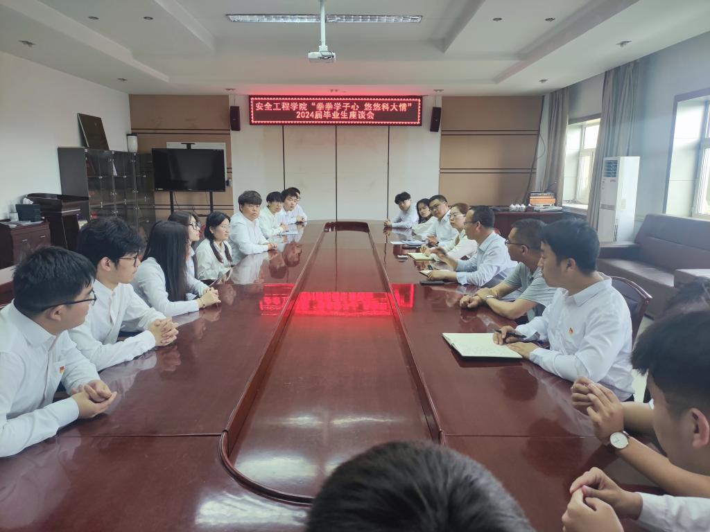 一场毕业座谈,倾听学子心声。为用心用情做好2024届毕业生离校工作,广泛听取毕业生对学校学院高质量发展的意见和建议,安全工程学院召开了以“拳拳学子心 悠悠科大情”为主题的毕业生座谈会。学院党委书记王娟、院长徐锋、副院长王亚军、毕业年级辅导员薛广鑫参加会议,座谈会由党委副书记郑红岩主持。座谈会上,各毕业生代表围绕学生工作、学风建设、实习实践基地以及就业指导等多个方面为学校和学院的发展建言献策。学院领导、老师与学生代表们进行了深入交流,整个座谈会氛围热烈,共收集建议17条。学院院长徐锋对毕业生送上三点殷切希望:一是希望毕业生们做一个对社会有用的人;二是希望毕业生们做一个善良的人;三是希望毕业生们做一个幸福的人。通过座谈会,加强了学院与学生之间的沟通,激发了毕业生的爱校情怀,坚定了毕业生感恩社会、回报社会的决心。