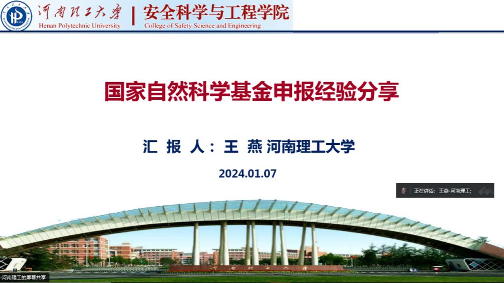 10:00,河南理工大学安全工程学院副院长王燕教授应邀为beat365教师作了题为《国家自然科学基金申报经验分享》的讲座,王教授从青年教师科研选题的重要性及国家基金申请书撰写中需要注意的细节两个大方面进行详细讲解,并与beat365教师就相关问题进行了交流。会后,徐锋院长就基金申报的重要性做了进一步的强调。