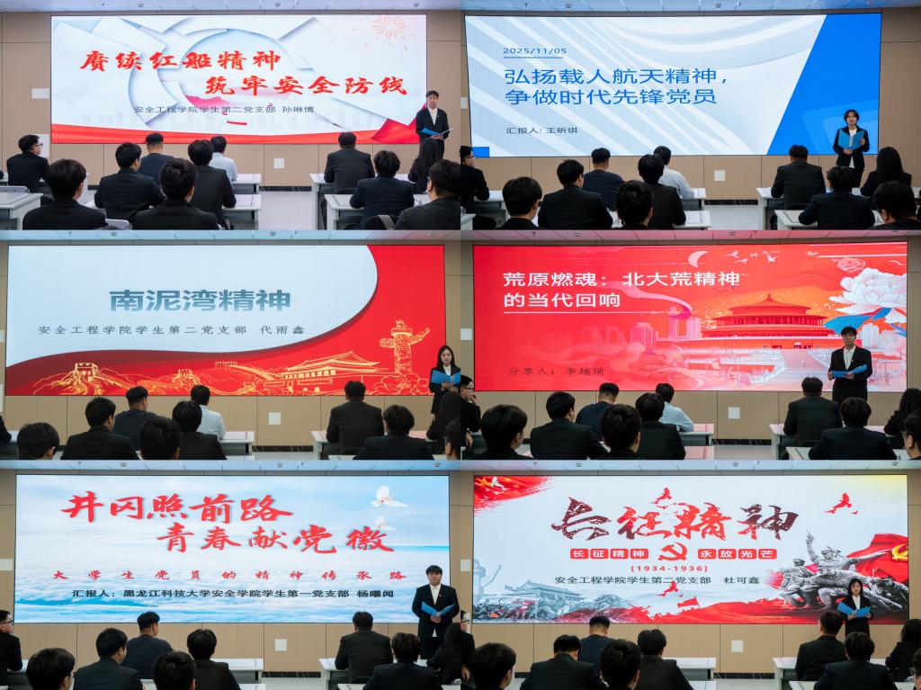 活动围绕红色精神传承与廉洁文化培育双向发力,学生党员分别以红船精神、航天精神、南泥湾精神、北大荒精神、井冈山精神、长征精神等红色精神为主题展开分享。分享过程中,学生党员们结合历史背景与新时代青年使命,深度挖掘每种红色精神中蕴含的廉洁基因,从红船精神里“克己奉公、服务群众”的初心坚守,到航天精神中“严谨务实、不谋私利”的职业操守;从南泥湾精神“自力更生、廉洁朴素”的奋斗底色,到北大荒精神“无私奉献、洁身自好”的价值追求;从井冈山精神“清正廉洁、密切联系群众”的优良作风,到长征精神“纪律严明、一心为公” 的坚定信念,让师生党员深刻认识到红色精神与廉洁品格的内在统一性,明晰青年党员在廉洁修身、廉洁做事、廉洁从政中的责任担当。