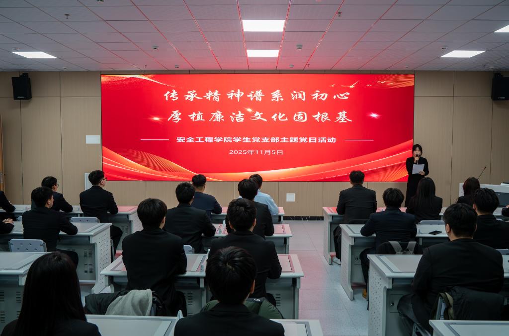 为着力推进安全工程学院“廉”动你我,“洁”伴同行“一院一品”廉洁文化建设活动,按照《beat365官方网站2025年全面从严治党暨党风廉政建设宣传教育月活动实施方案》要求,切实增强师生党员廉洁自律意识,营造丰富多彩的廉洁文化“新生态”。11月5日,安全工程学院在碳谷大厦718室开展了“传承精神谱系润初心,厚植廉洁文化固根基”主题党日活动。学院全体学生党员参加活动,活动由安全工程学院学生第二党支部书记薛广鑫主持。