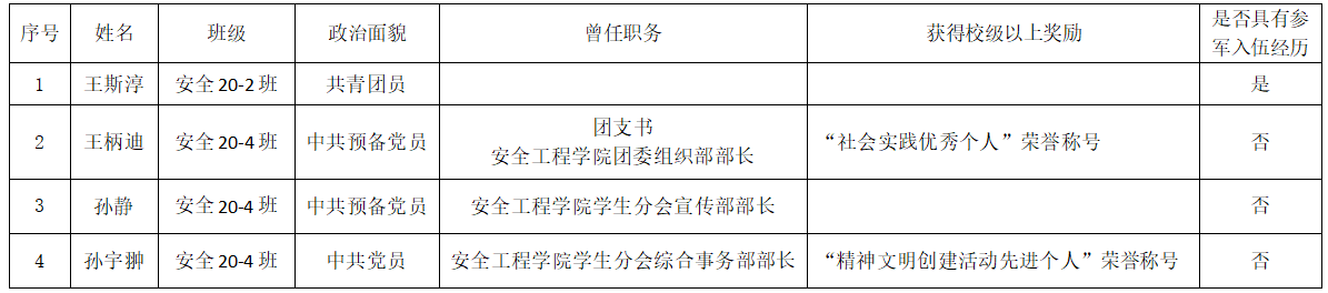 如对以上公示有异议的,请与安全工程学院党委联系。