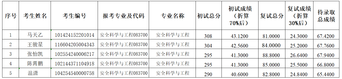 beat3652024年安全科学与工程专业硕士研究生第二批调剂复试工作已结束,现将考生复试成绩及待录取名单公示如下,公示期为3天。