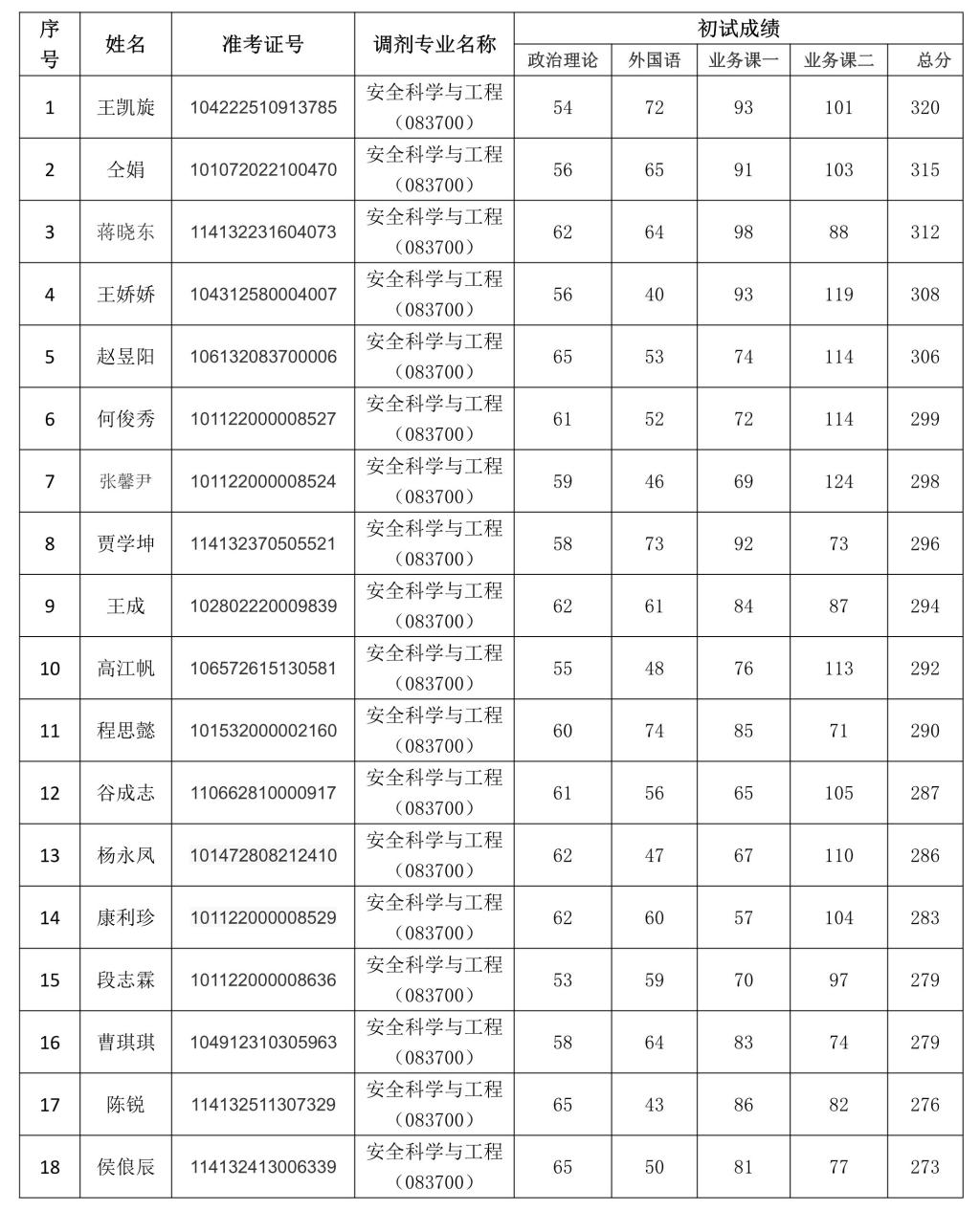 经安全工程学院研究生招生工作领导小组审核,以下考生可参加beat365安全科学与工程专业调剂复试,名单公示如下: