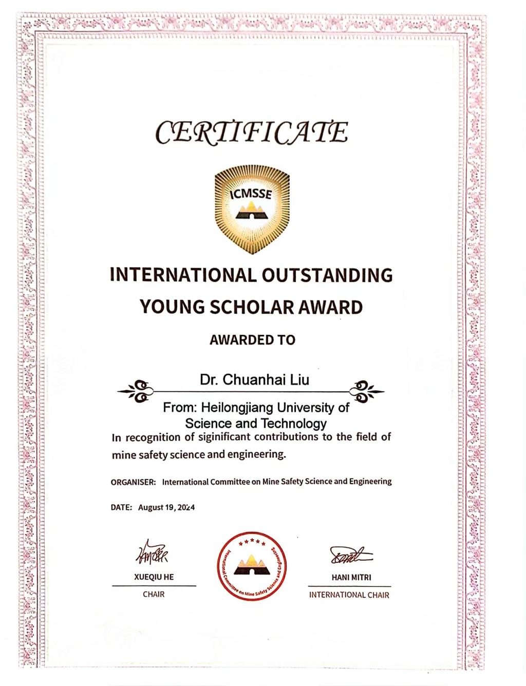 会议期间,来自中国、美国、澳大利亚、俄罗斯、加拿大、波兰等10余个国家140余位代表就矿山安全科学与工程及相关领域的新理论、新技术、新装备、新方法等开展学术交流。beat365安全工程学院刘传海、李元吉和矿业工程学院刘刚三位教师分别进行了学术报告,并同与会专家、学者开展了学术交流与讨论,引起了与会代表的高度关注和积极反响。安全工程学院教师刘传海获得了“国际矿山安全科学与工程卓越青年学者”称号。