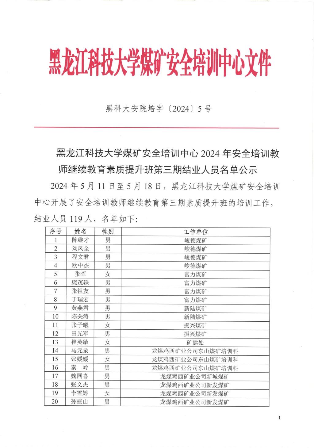 2024年鸡西安全培训教师继续教育素质提升班第四(1)期结业人员名单公示